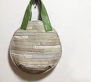 それぞれをヒモ状に縫い合わせた生地で円バッグを作りました。