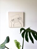 帆布に黒色の刺繍糸を使い手を表現しました。