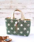 ・表のカーキ地(濃い緑)に白の星柄は、綿100%の8号帆布。厚手です。