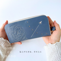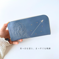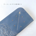 刺繍革財布『ひこうき雲』アッシュBLUE(牛革)ラウンドファスナー型☆スリムタイプ☆