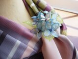 小さい花束のような紫陽花の花をディップアートで作って,ブローチにしてみました。爽やかなパールブルーの紫陽花の中にさし色としてパールホワイトの紫陽花を入れています。