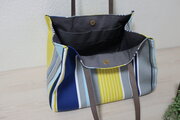表地は色鮮やかなストライプ柄フランスコットンで、素材感がありこれからの季節に