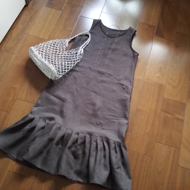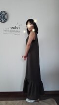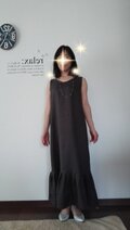 マキシ丈で裾にプリーツフリルをいれました。プリーツなので、そこまで広がらずに適度な落感も出てスッキリ着こなせます。