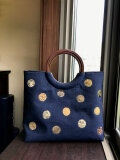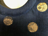 前回の焦げ茶の手提げと同じデザインを、紺地の紬で作りました。