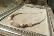 *中央にひねり加工のジェイドを3粒使いました。うっすらと靄がかかったような乳白色のとてもきれいな石です。表面のつやつやとした輝きも美しいです。