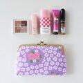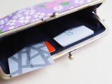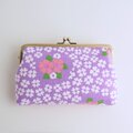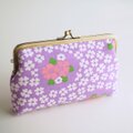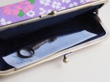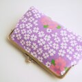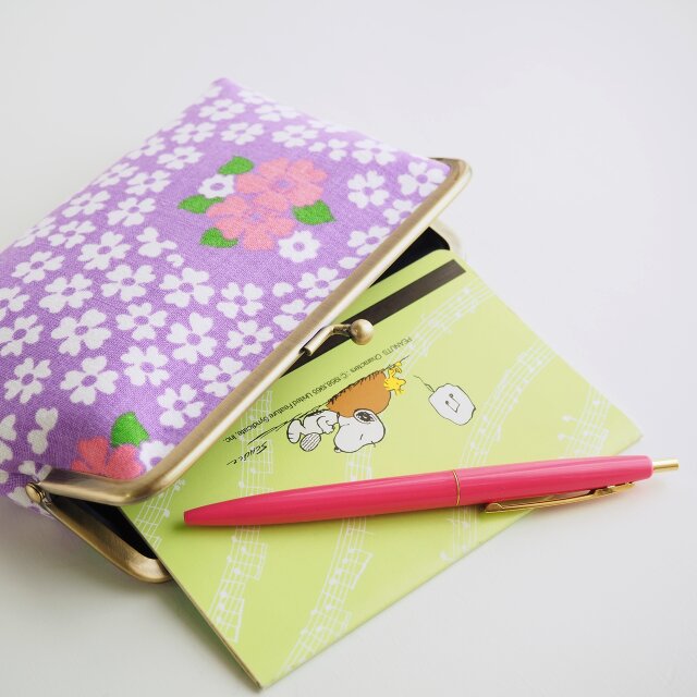 ■ヴィンテージ生地のスクエアがま口通帳ケース / パープルにピンクと白の花■ dune (vt-vf-pplw)
