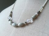 *檸檬といっても黄色ではなく、アイボリーにごくうっすらとグレーの模様が入った個性的な石です。表面はすべすべした感じです。