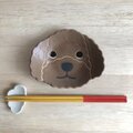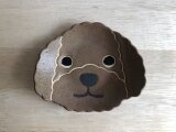 トイプードルの顔形に切り出した白荒土製の皿です。