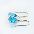 14KGF高品質スイスブルートパーズのブリオレットドロップカットピアス ~Natalie