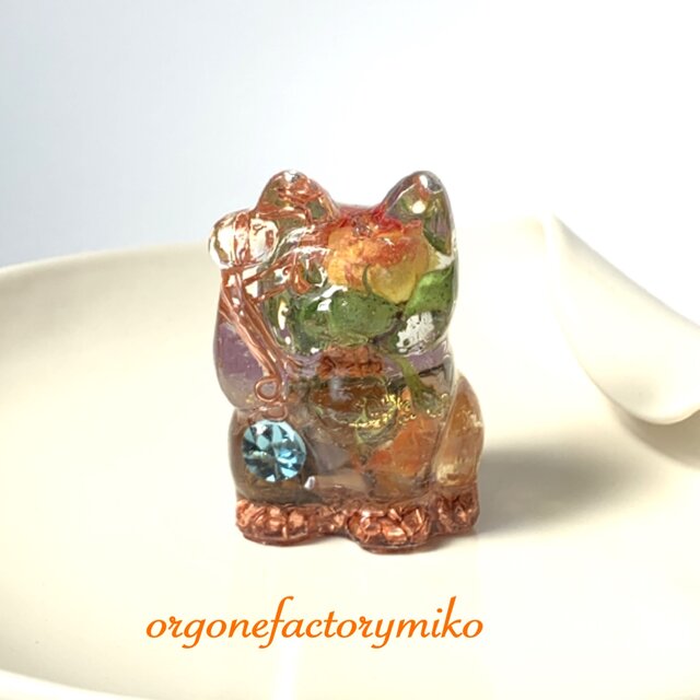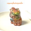 金運を呼ぶと言われている右手上げ招き猫ちゃんに、金運の王道、シトリンとタイガーアイとカーネリアンを底部に入れました。