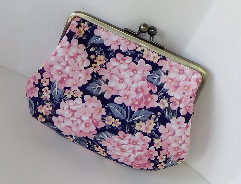 リバティタナローン 新柄ハンプシャーブルーム(ピンク)で作りましたがま口ふっくらポーチです