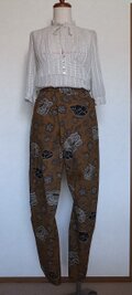 作品が到着しました。 長めの丈は内側に織り込み履いてみました。 自転車を運転しましたが、楽ラク。 このカラフルな柄が また最高! 生粋の会津人の母は「ホントに素敵!」と言ってくれました。 やはり会津木綿が懐かしい様子。 今度は一回り小さめで作って頂けると嬉しいです。 又覗かせて頂きますので 今後共、宜しくお願い致します。