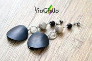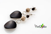 ライトグレーをベースに天然のストライプ模様が見られナチュラル感が素敵なシルバーリーフジャスパーのラウンドカットの10ミリとブラウンと濃淡に表情があり雰囲気と軽さが魅力のウッドビーズエボニー(黒壇)25ミリ×25ミリ×4ミリのツイストコイン、アクセントに14ミリのシルバーパーツを組み合わせた夏を感じるデザインピアスです。