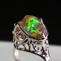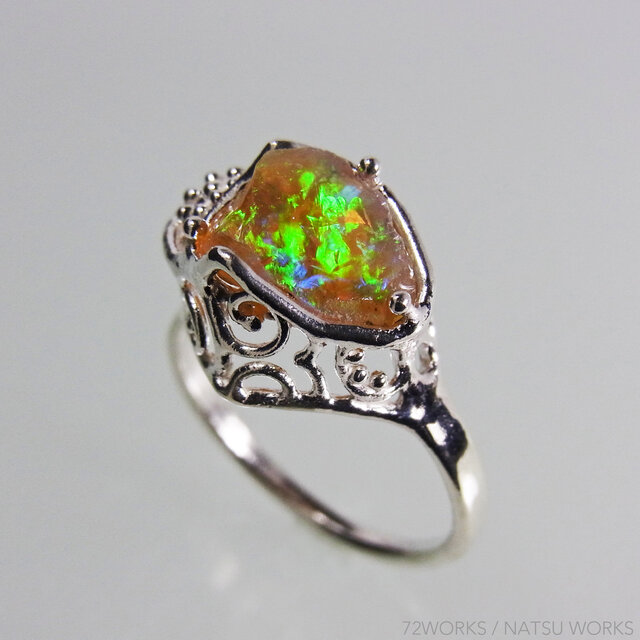 黄色がかった原石に浮かぶ遊色は、写真に収まりきれません。