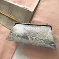 西陣織 絹帯2wayバッグ 24金銀泊シルバー×ゴールド タッセル、チェーン付き