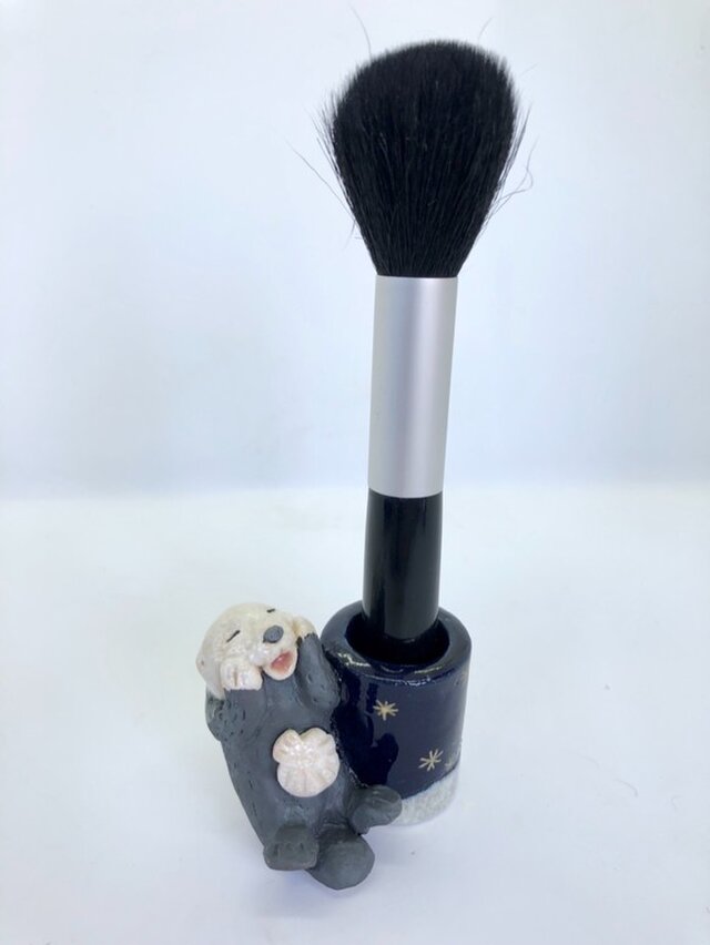 両頬を持ち上げて、うれしそうなラッコ君をスタンドにしました。
