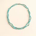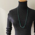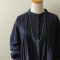 ハードな印象のないターコイズネックレスなので、きれい目スタイルにも違和感なく