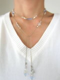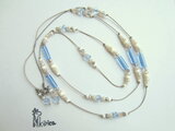 ベージュとブルーのコントラストが美しいロングネックレスが出来ました。