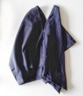 半分は極細ラインが入った麻、半分はネイビーの綿麻で