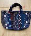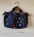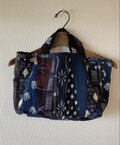 このバックは、絣の端切れをせっせと三角に切り、たくさん貯まるとミシンを踏み、完成までに何日もかかった”おばあちゃん作のバック”です。