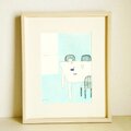 インテリア インテリアアート ナチュラルインテリア イラスト イラストレーター アナログイラスト オリジナル額縁 無垢材 額縁 絵画 リラックス 新築祝い 引っ越し祝い 誕生日 白い犬 犬の絵 かわいい絵 犬 夏 青 BLUE