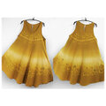 ノースリーブワンピース(ミディ丈)(横段ボカシ染)(ジャワ更紗模様)(金茶色濃淡)
