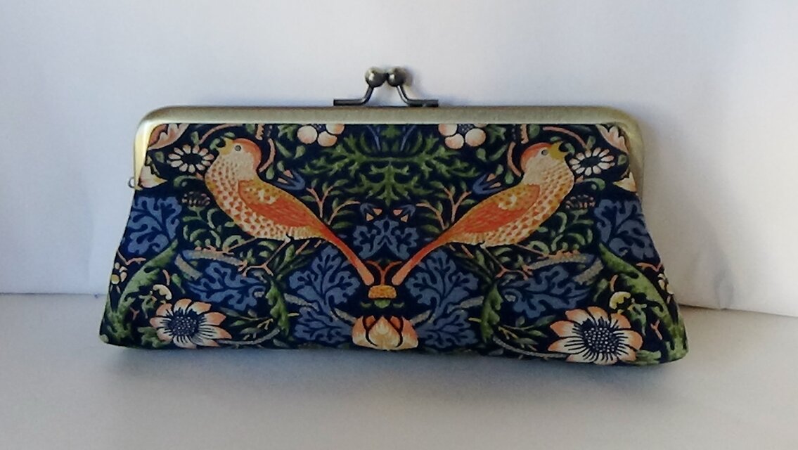 ウイリアムモリス いちご泥棒で作りましたがま口ペンケースです