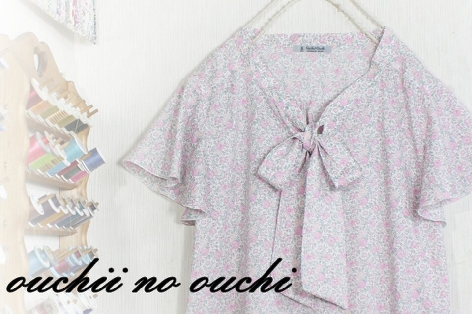 リバティ・タナローン代表的な大人気柄 ホビーラ限定Felicite フェリシテ縮小柄でギャザーヨークブラウスを作りました。