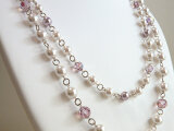 パールとスワロフスキークリスタルの2連ネックレス(ラベンダー)
