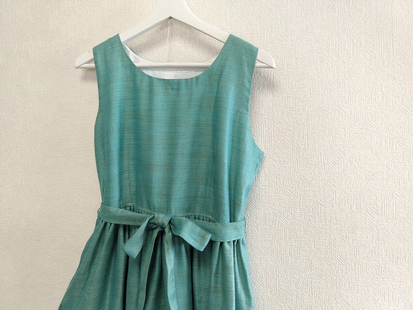 ★訳アリ★ワンピース★杉綾織金糸入り青緑・★インドから入荷★