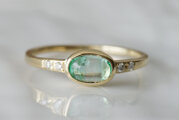 エメラルドはフクリン留めを施し、両サイドはダイヤモンドを合計4粒彫り留めしております。