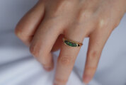 光や角度によって色が変わって見えて楽しくも美しい指輪です。サイドの小さなダイヤもキラキラしてかわいいです。嬉しくて毎日つけています。ありがとうございました。