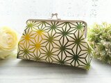 ◆【売り切れ】【再販2】モダン麻の葉柄あさぎ色がま口ポーチ*和柄和服着物浴衣日本がま口バッグさわやか