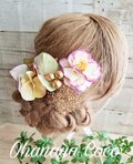 袴や浴衣などにちょこんと配置、派手にならず、華やか上品に仕上がるサイズの髪飾りセットです( 〃▽〃)