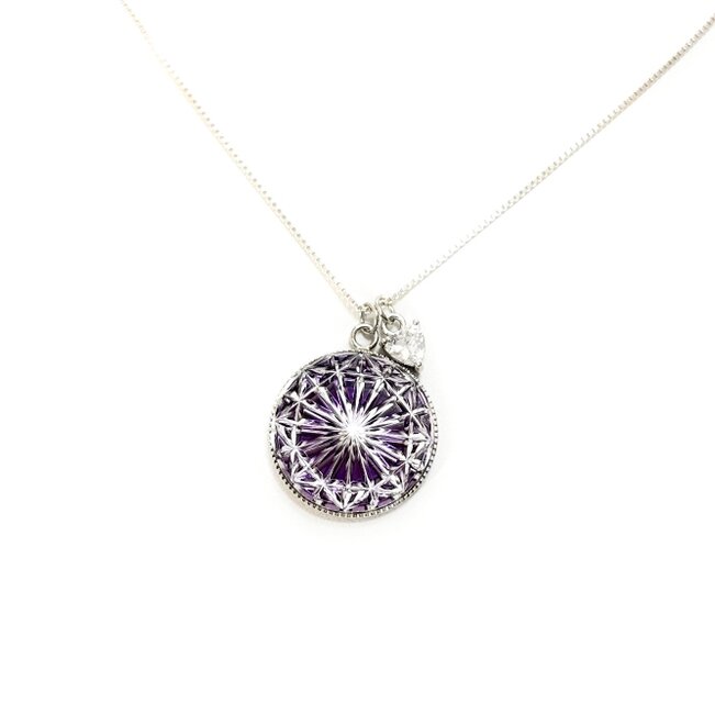 光と反射を入れ込んだ切子ガラスに、ダイヤモンドのキラキラが混じり、シンプルですがとても素敵なネックレスが出来上がりました。