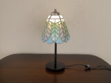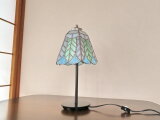 リーフ淡いグリーン(葉っぱの模様A)ステンドグラスランプ(テーブルランプ)・ガラス照明 ・Lサイズ