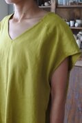 リネンVネックフレンチスリーブワンピース ピスタチオ