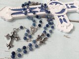 濃紺色の色合いが美しいブラジル産ブルークォーツ(ブルーアベンチュリン、インディゴライトクォーツ、デュモルチェライトインクォーツ)を使用したロザリオです。