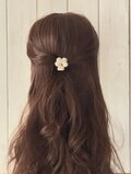 ポニーフックはヘアゴムで髪を束ね、束ねたゴムに引っ掛けるように上から挿してつかう髪飾りです。