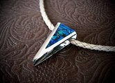 ●きらめくミラー素材と、深い海の色に染めた螺鈿(らでん)を張りあわせ研磨し、ペンダントをお作りいたしました。
