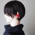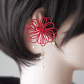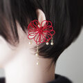 ※ご注意写真も掲載していますが、金具の破損防止のためお届け時はイヤーカフパーツが飾り結びに対して平行に「倒れて」いますのでそっとゆっくり起こしてください。90°きっちり起こす必要はありません