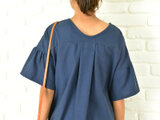 大人のレッド!リネン素材のタックワンピース <ネイビー>