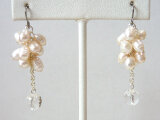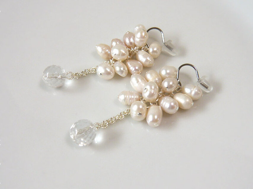 キラキラカット入りの水晶と淡水パール、そこにシルバーを合わせました。