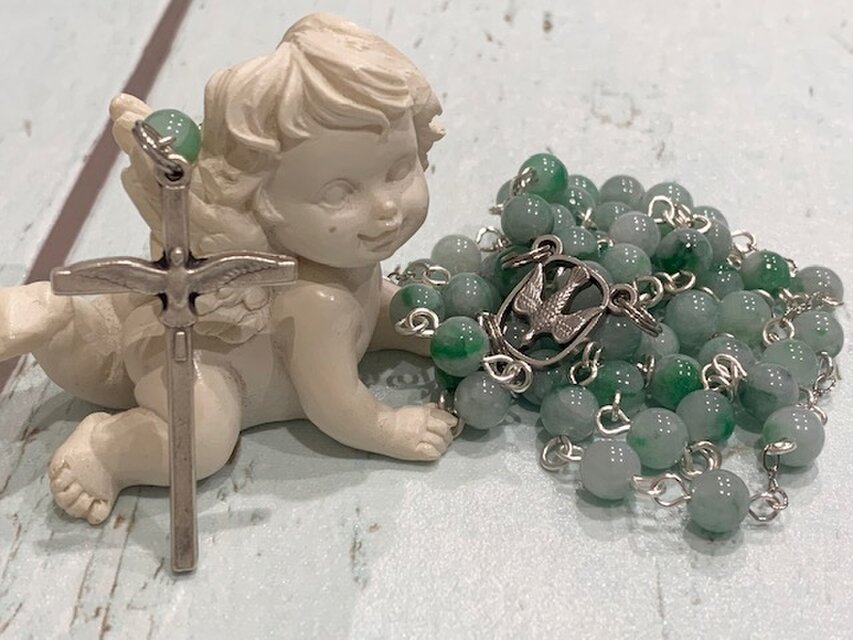 お品受取りしました。2つ共に良い出来上りで、丁寧に包んで下さり有難うございました。 このような大きな玉とメダイで大変だったのではないかと申し訳なく思います。