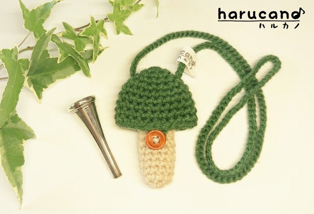ホルン マウスピースケース(毛糸)キノコ型【エバーグリーン・草色】首掛け用