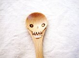 ウッドスプーンにコテでガイコツを焼きつけました。