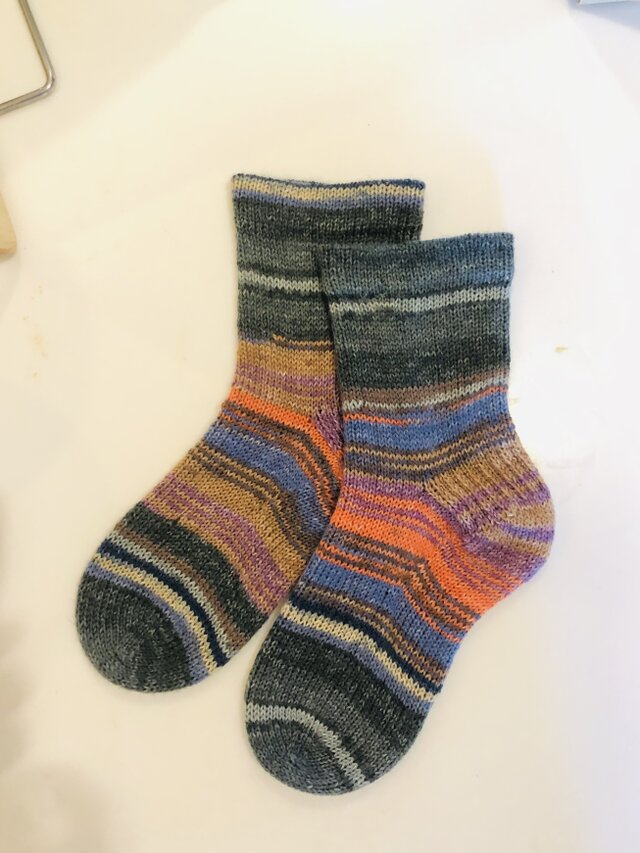 ちなみに竹串か?!ってくらい細い針で編んでるので意外と薄いです。普通の靴下と同じように履けますよ♪