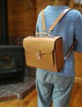 ・国産の牛革を自社でデザイン、裁断、仕立てのすべてを手掛けた一品物で、一般的なヌメ革のカバンに比べて軽く、日常使いに向いています。また、内部も裏地は無く非常にシンプルなデザインでいろいろな服装に合わせやすく大変もちの良いバッグになっています。