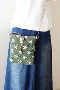 スマホやお財布などちょこっと入れるのにちょうどいいサイズの、ショルダーバッグです。