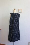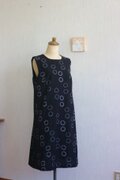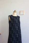 あぶく柄の黒色久留米絣でワンピースを作りました。